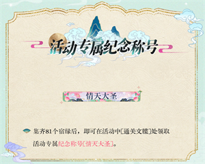 集齐「梦悟尘因」系列限定六星灵犀,可在【回家-流光印迹】处领取留声机专辑【情天蕴海】中收录的主题音乐【净诸邪】【灼桃盈】【三途苦】【来时路】【乐升平】。体验异世红尘,聆听音符中蕴含的浪漫。