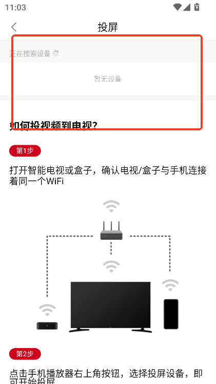保证同一WiFi下,搜索设备,即可连接设备进行投屏