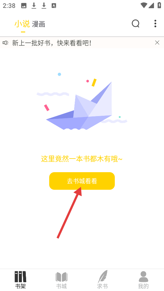1、在书架页面,点击【去书城看看】按钮,即可进入书城页面。