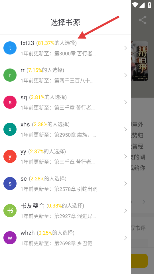 4、进入书源选择页面后,点击【txt23】这个书源,就能开启《狂少归来》的阅读啦。