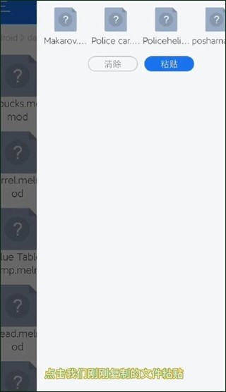 1、首先需要下载好甜瓜游乐场模组,将文件使用“ES浏览器”打开,然后复制全部模组,打开文件我们可以看到4个模组,点击复制全选。