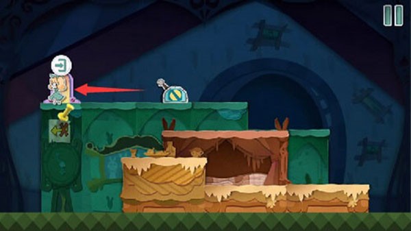 7、通过对话通关:最后,从屏幕右侧走到左侧,爬到小鸭子那层,带着小鸭子跟红色纸片上的小鸡对话即可通过这一关。